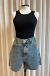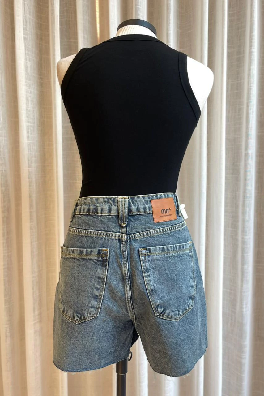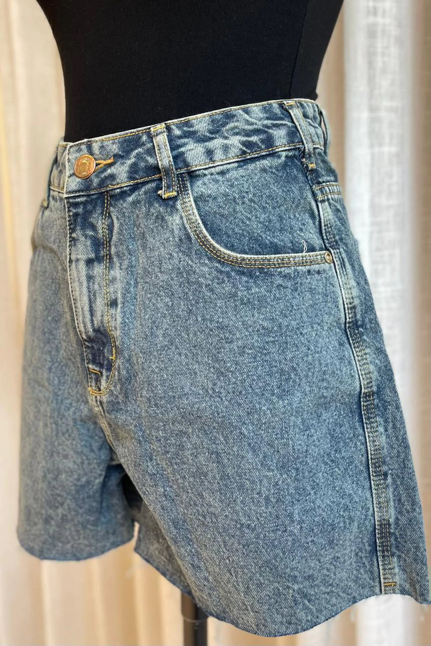 Bermuda confeccionada em jeans de alta qualidade, com toque resistente e caimento confortável. Possui comprimento meia coxa e barra desfiada, conferindo um visual moderno, despojado e cheio de personalidade, além de cós com passantes para cinto e zíper e botão metálico para fechamento.