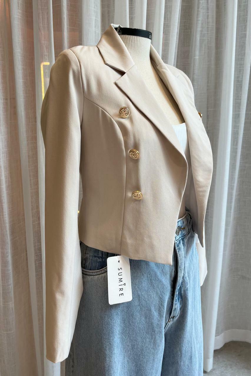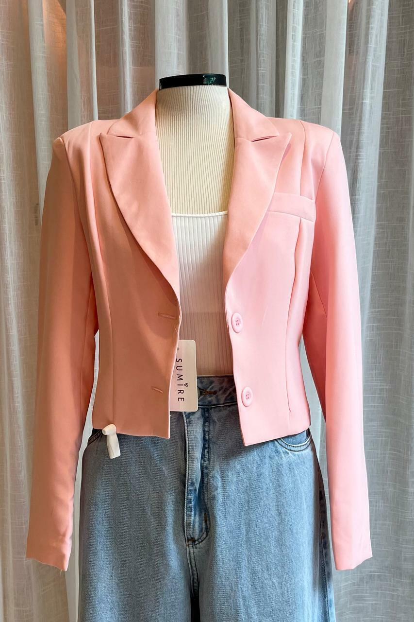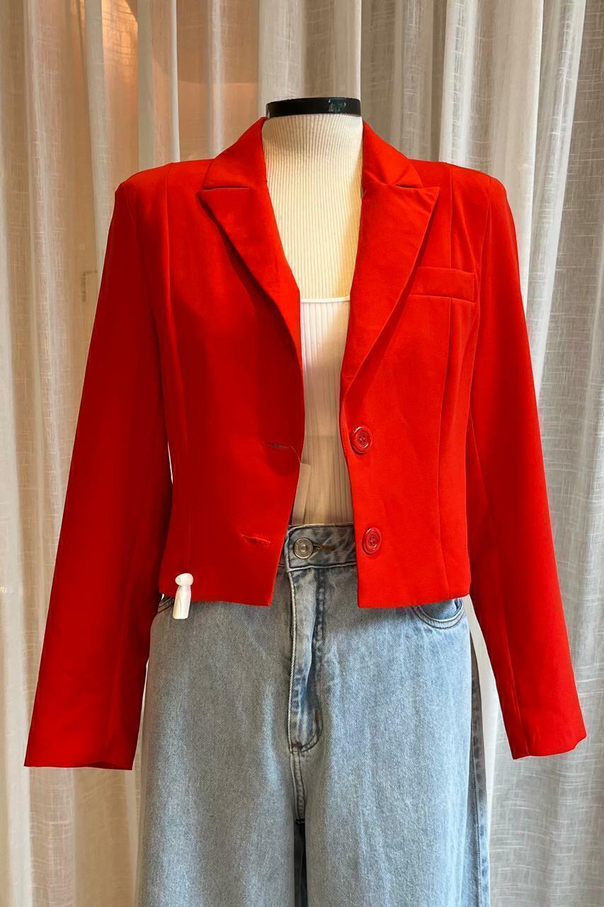 Blazer feminino cropped confeccionado em tecido de alfaiataria, com fechamento frontal por dois botões e bolso decorativo (fake) localizado de forma unilateral. O comprimento encurtado adiciona um toque moderno e estiloso à peça, enquanto a alfaiataria estruturada proporciona caimento impecável. O detalhe do bolso fake em apenas um dos lados dá um charme assimétrico e sofisticado ao visual. Ideal para quem busca elegância com personalidade.
