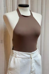 Body feminino com amarração no pescoço, perfeito para composições modernas e casuais. Confeccionado em malha de poliamida com elastano, o tecido é leve, macio, garantindo conforto e ajuste perfeito ao corpo. A modelagem é justa, valorizando a silhueta com acabamento clean.