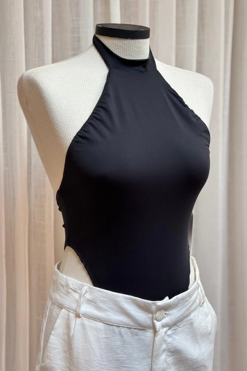 Body confeccionado em malha de poliamida de toque macio, com caimento justo e excelente elasticidade. Possui modelagem cavada e decote halter com amarração no pescoço, proporcionando ajuste personalizado e valorizando a silhueta.