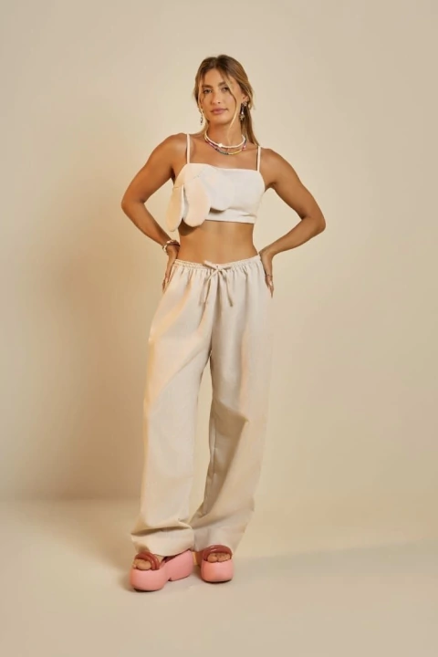 Calça Mali, confeccionada em linho de alta qualidade, tecido leve e confortável. Tem modelagem reta, cós com elástico e regulável. Possui bolsos laterais funcionais e forro, que garante conforto e segurança no uso..