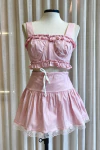 Conjunto confeccionado em tecido tricoline, leve e com toque macio, ideal para composições femininas e sofisticadas. A saia curta rodada possui detalhe de aplicação bordada na barra, que adiciona charme artesanal e um acabamento delicado à peça. Conta com corda embutida para ajuste na cintura, permitindo um caimento personalizado e confortável, além de fechamento por zíper para praticidade. O cropped apresenta busto estilo meia-taça, que valoriza o colo com estrutura e sustentação. Possui alças médias e detalhes franzidos no decote e na barra, conferindo um toque romântico e refinado. O fechamento por zíper frontal complementa o design moderno e facilita o vestir.