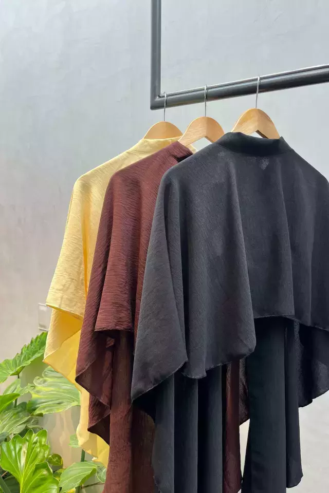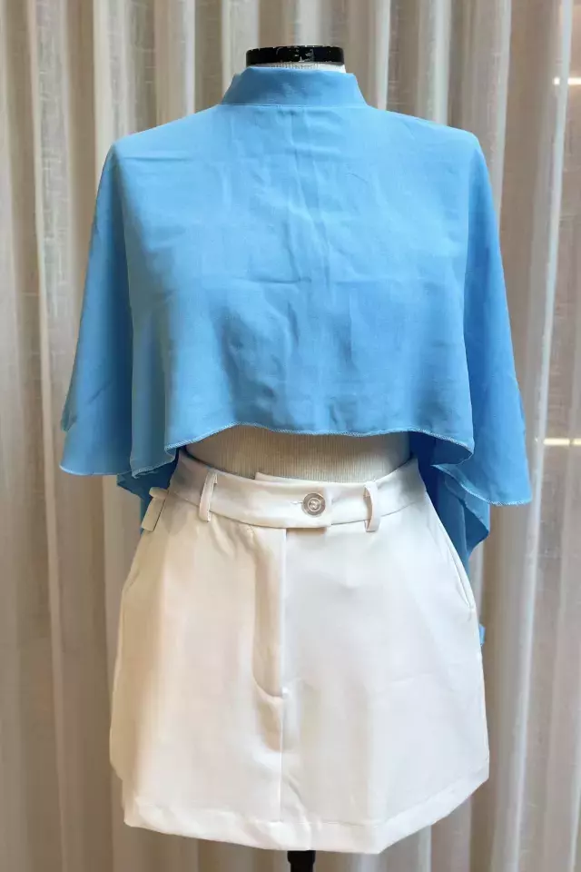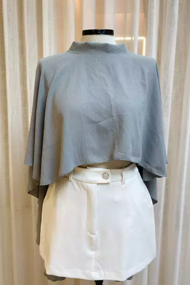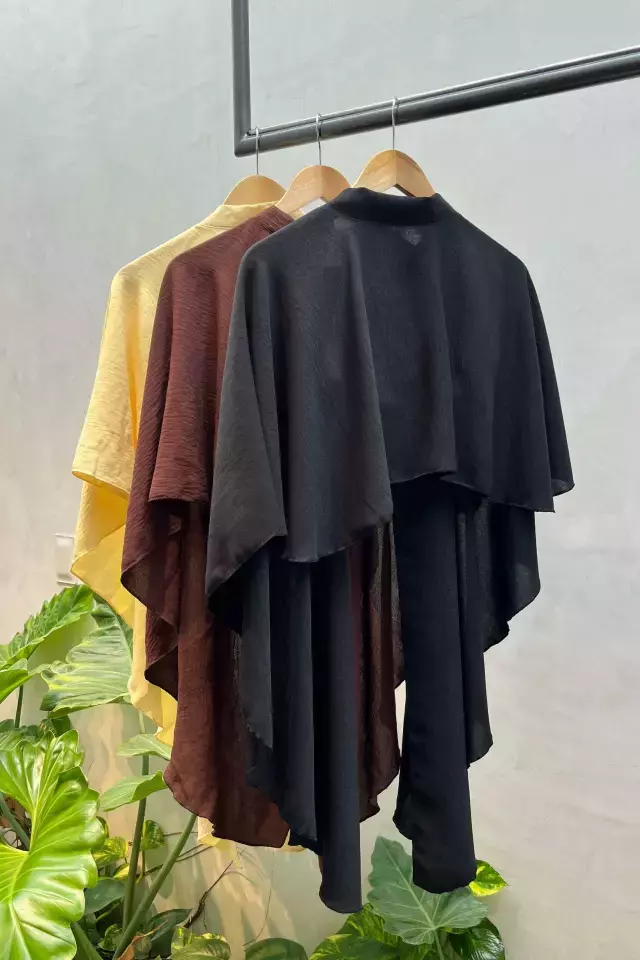 Cropped estilo capa em crepe, confeccionado em tecido leve que proporciona um visual delicado e sofisticado. O modelo possui comprimento médio, com caimento solto em forma de capa que adiciona movimento e elegância à peça. As mangas amplas e o acabamento fluido reforçam o charme do cropped, perfeito para sobreposições modernas e cheias de estilo.