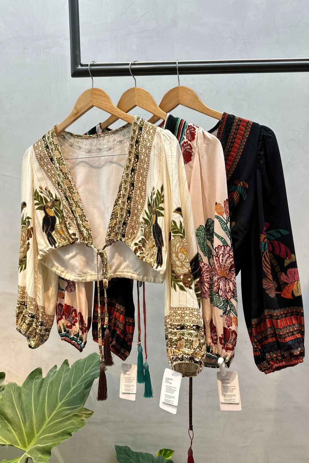 Cropped de manga longa com design boho-chic, confeccionado em tecido leve e confortável, ideal para looks cheios de estilo e personalidade. A peça conta com amarração frontal, que permite ajuste personalizado e valoriza o decote de forma charmosa. Nas pontas das tiras, pequenos pompons aplicados trazem um toque divertido e artesanal, dando movimento e originalidade ao visual. As mangas longas, levemente soltas, complementam o look com fluidez e elegância.