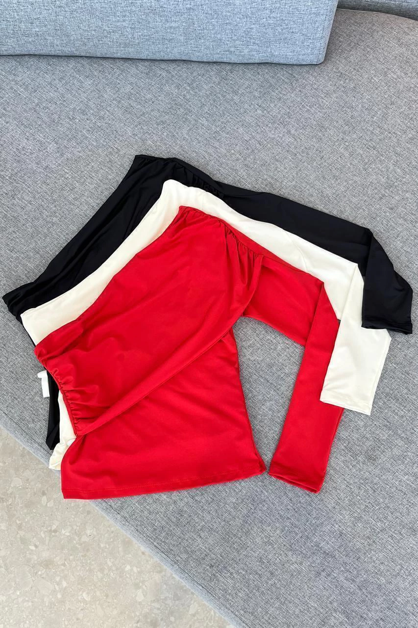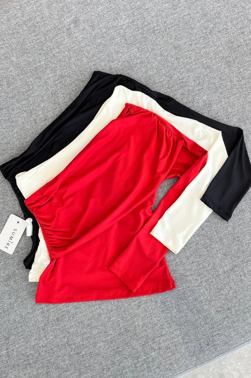 Cropped confeccionado em poliamida com toque macio, caimento justo e excelente elasticidade, garantindo conforto e valorização da silhueta. Possui manga longa única, criando um visual assimétrico moderno e sofisticado. No busto, apresenta detalhe sobreposto que se estende até o ombro, adicionando volume sutil, charme e um design diferenciado à peça.