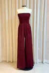 Macacão confeccionado em alfaiataria estruturada, com caimento elegante e acabamento sofisticado. O modelo apresenta decote tomara que caia com recorte reto e detalhe frontal com botão decorativo, realçando a região do busto com um toque moderno. A cintura é marcada, valorizando a silhueta, enquanto a calça possui modelagem reta levemente ampla, garantindo conforto e alongando a linha das pernas. O fechamento em zíper nas costas oferece praticidade e um ajuste impecável ao corpo.