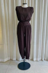 Macacão confeccionado em crepe de caimento leve e elegante, oferecendo estrutura na medida certa sem perder o conforto. Apresenta decote reto com alças largas finalizadas em laços sobre os ombros, detalhe que traz charme e um toque feminino à peça. A modelagem é alongada, com cintura bem definida e pernas retas, garantindo visual sofisticado e silhueta alongada. Possui bolsos funcionais nas laterais e fechamento posterior por zíper, que facilita o vestir e proporciona melhor ajuste ao corpo.