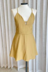 Macaquinho curto confeccionado no tecido marant, que garante leveza e caimento fluido. O modelo conta com alças finas, trazendo delicadeza ao visual, além de fechamento por zíper que facilita o vestir. O grande destaque está na amarração nas costas, detalhe moderno e charmoso que valoriza a silhueta e proporciona ajuste perfeito.