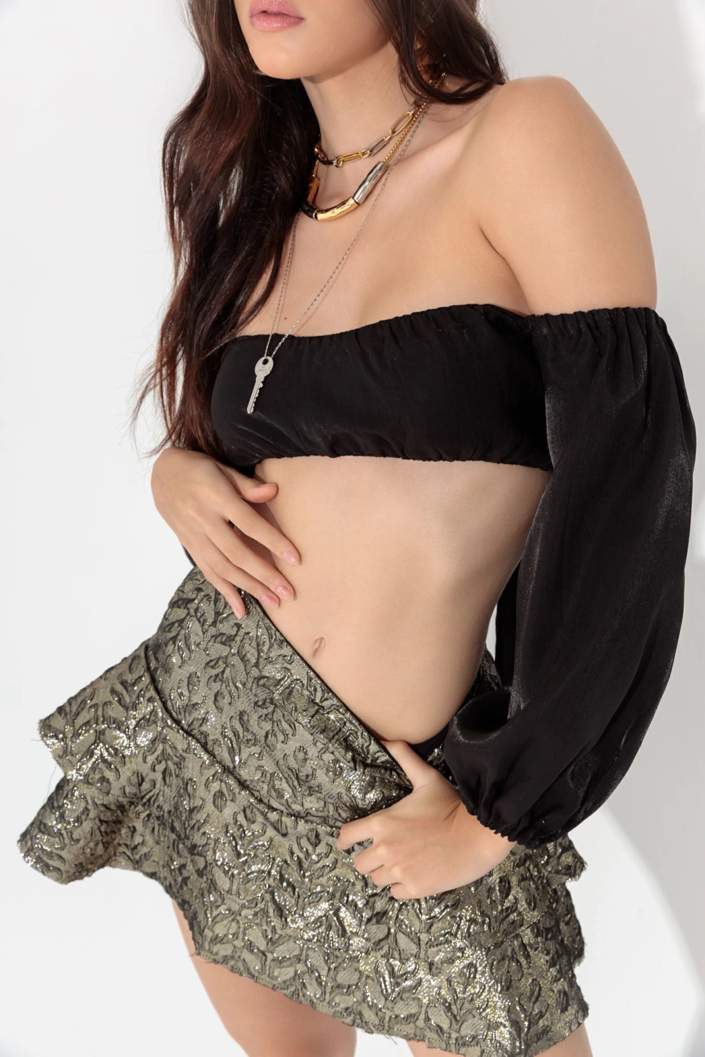 Combine com croppeds, bodys ou camisas ajustadas para equilibrar o volume dos babados. Aposte em sandálias de salto ou scarpins e finalize com acessórios delicados para um look sofisticado e atual.