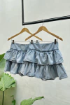 O mood junino repaginado com estilo e movimento! A Saia Luna aposta na leveza dos babados em jeans claro pra criar um visual fluido, fashion e cheio de atitude.