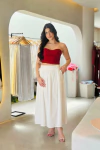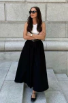 Saia midi confeccionada em tecido leve e de ótimo caimento, oferecendo movimento fluido e elegante a cada passo. Apresenta cintura alta, cós estruturado com passantes e uma silhueta ampla e rodada, que garante conforto e sofisticação. Seu design minimalista torna a peça versátil e perfeita para compor looks modernos e marcantes.