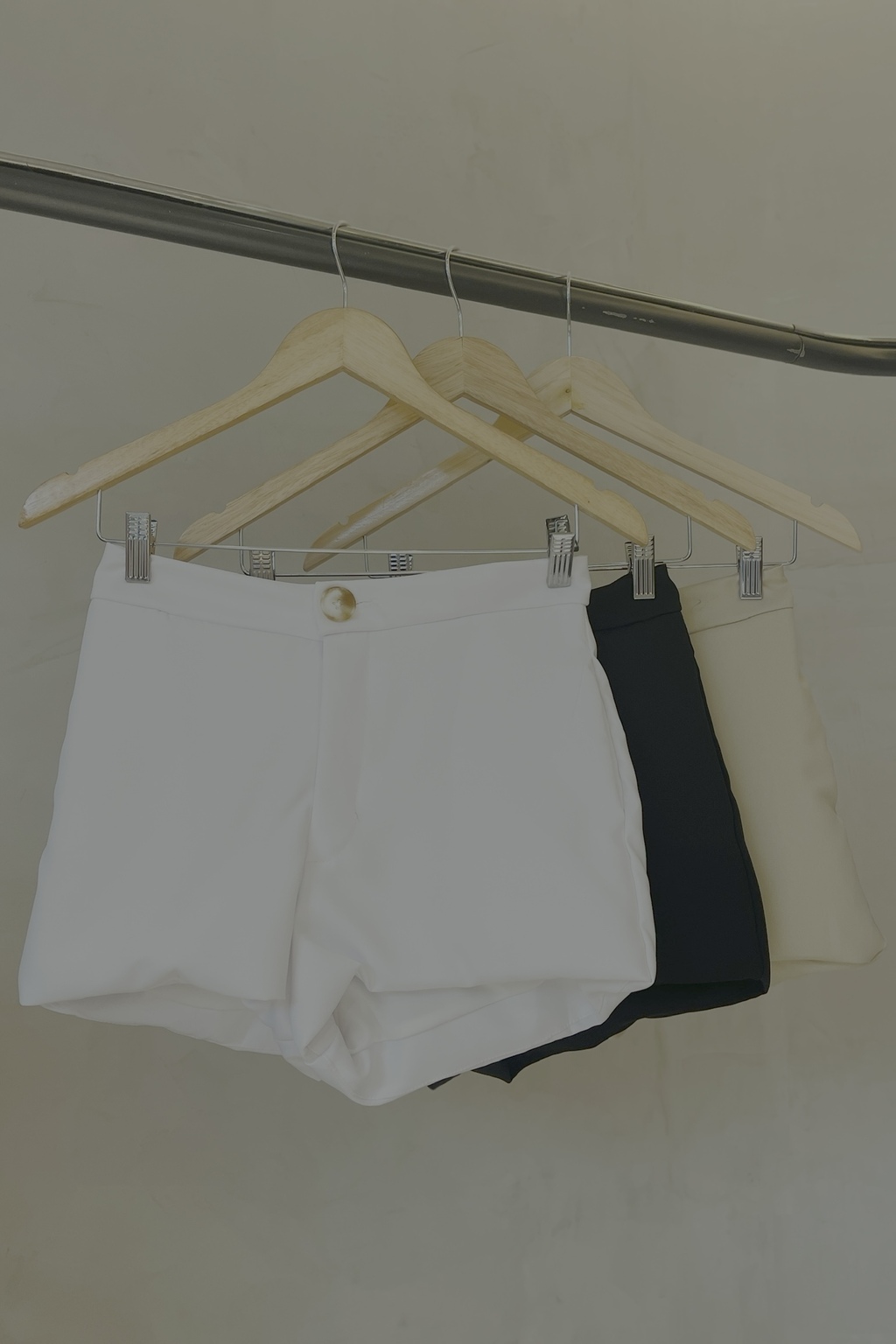 Short curto em viscolinho sarjado, com botão embutido, possui forro.