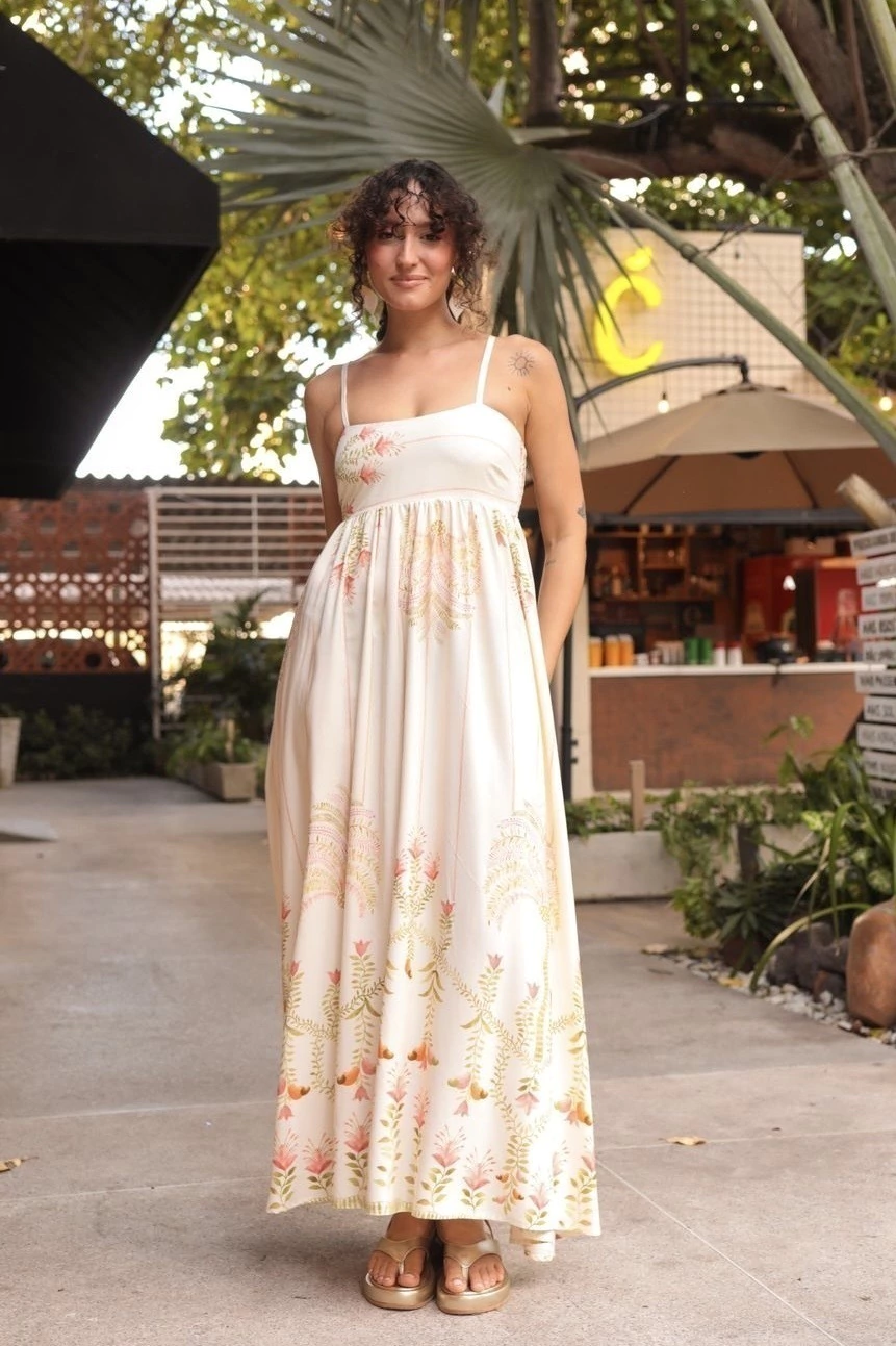 Confortável e delicado, este vestido longo midi é confeccionado em tecido leve, com lastex na região do busto, que garante ajuste perfeito e valoriza o colo. As alças finas trazem um toque feminino e elegante, ideal para dias quentes.