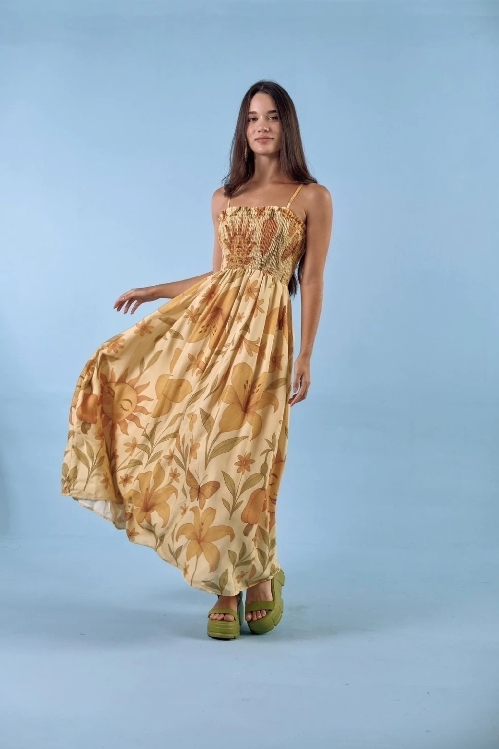Elegante e feminino, este vestido longo midi cria um visual leve e sofisticado. Conta com lastex na região do busto, garantindo ajuste perfeito. O caimento solto valoriza a silhueta com conforto e traz um toque de delicadeza. Ideal para ocasiões especiais ou produções casuais com charme.