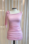 Vestido curto confeccionado em poliamida, com toque macio, caimento justo e excelente elasticidade. Possui alça média em apenas um lado, criando um visual assimétrico moderno e elegante. No outro ombro, conta com amarração, que além de oferecer ajuste perfeito, adiciona um charme extra ao design. Apresenta drapeado lateral ao longo do corpo, valorizando a silhueta e trazendo um efeito sofisticado e feminino.