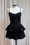 Vestido curto confeccionado em tecido leve com toque macio, caimento estruturado e ótimo ajuste ao corpo. O modelo possui alças finas, decote coração e busto com recortes que valorizam a silhueta. A cintura é marcada e acompanha uma sobreposição em babados, criando volume sutil e um visual feminino e moderno. A saia curta confere movimento e delicadeza, tornando a peça versátil para diversas ocasiões. O fechamento fica por conta de zíper posterior.