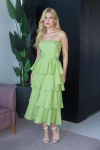 Vestido longo confeccionado em crepe folk, tecido leve e encorpado que proporciona excelente caimento e toque suave. O modelo tomara que caia valoriza o colo com elegância, enquanto a modelagem ampla cria movimento fluido e sofisticado a cada passo. O fechamento fica por conta de zíper posterior. Seu visual combina conforto e feminilidade, sendo perfeito para ocasiões em que se busca um look marcante e atemporal.