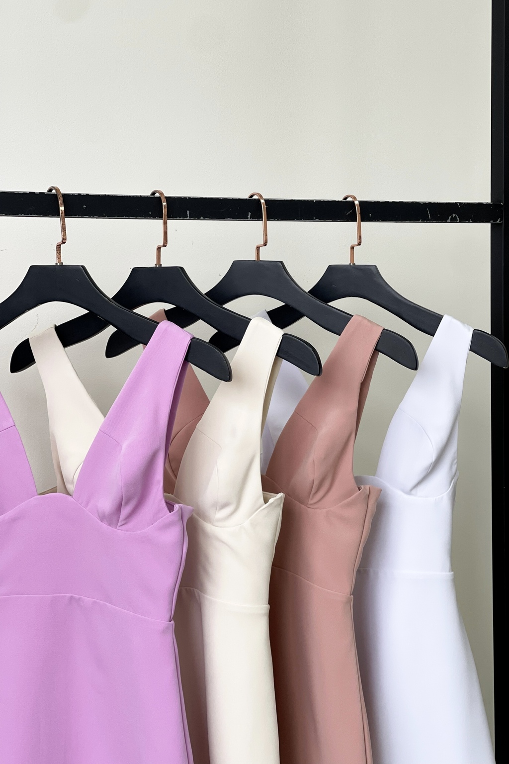 Vestido curto em crepe alfaiataria, decote em V, modelo bem sofisticado.