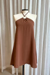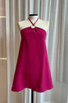 Vestido curto confeccionado em tecido acetinado, com brilho sofisticado e caimento leve que realça a silhueta. O modelo possui decote halter com amarração delicada na nuca, deixando ombros e colo em evidência. As costas são totalmente nuas, criando um visual elegante e sensual na medida certa. A modelagem reta garante conforto e modernidade, enquanto o fechamento por zíper traseiro proporciona ajuste perfeito ao corpo.