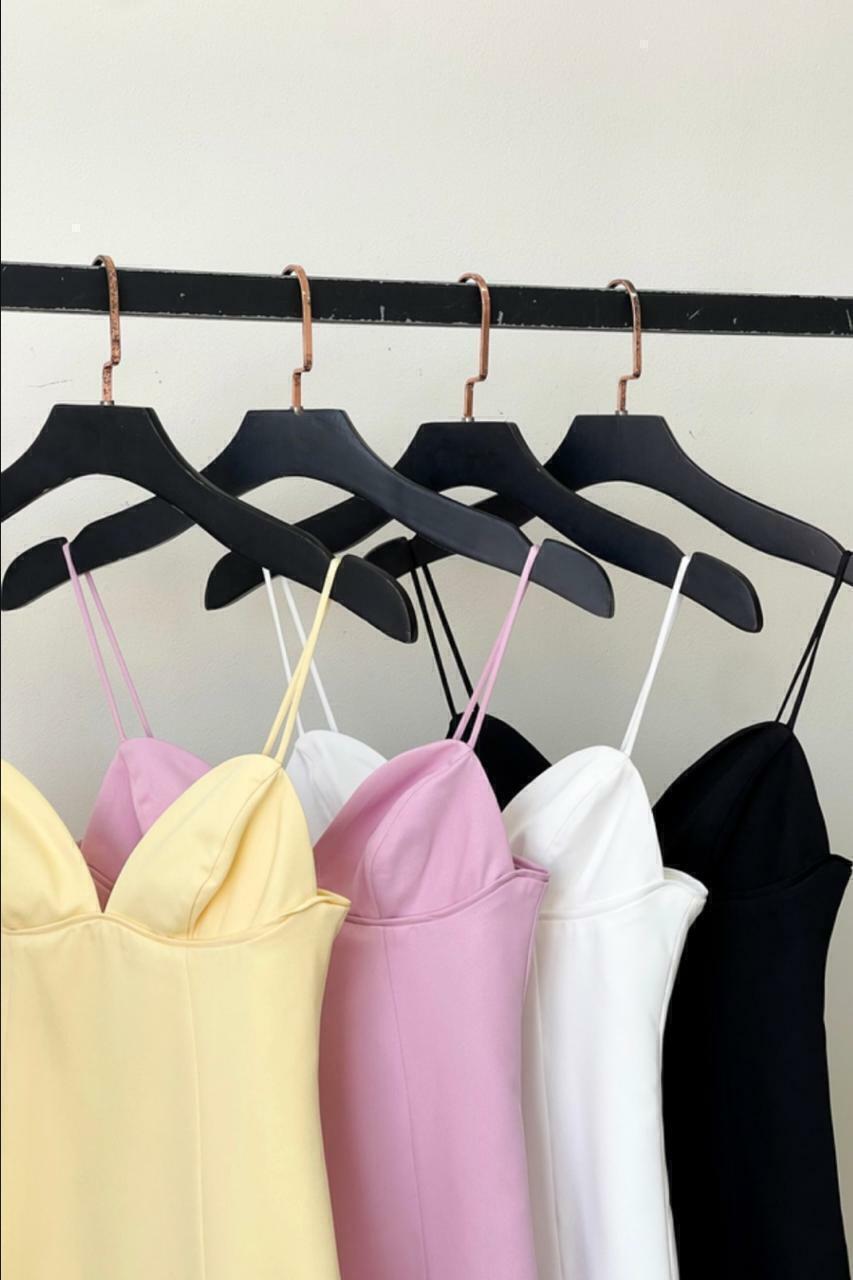 Vestido feminino em alfaiataria, com corte elegante e estrutura sofisticada, ideal para ocasiões que pedem estilo com leveza. Confeccionado em tecido encorpado, a peça apresenta modelagem levemente acinturada, proporcionando um caimento impecável ao corpo. O decote suave valoriza o colo de forma discreta e feminina. As alças finas nos ombros adicionam um toque delicado ao look.