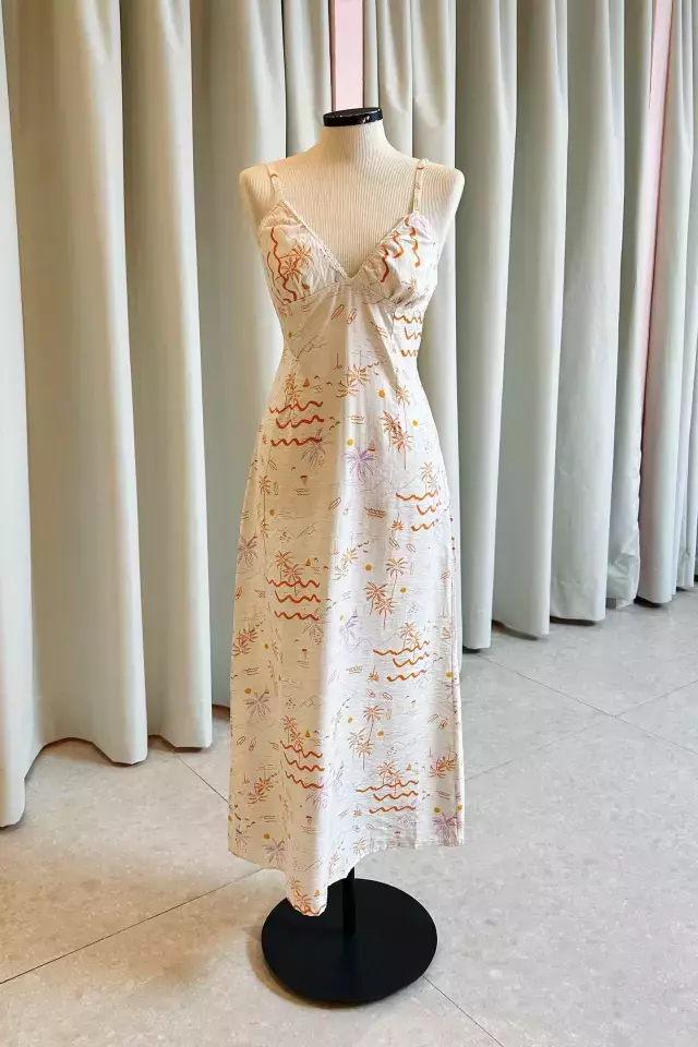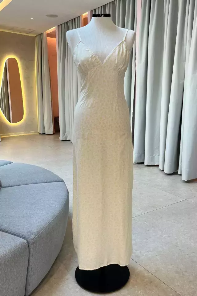 Vestido modelo midi em tecido leve com estampa delicada, ideal para um visual romântico e confortável. Possui alças finas, decote em V que valoriza o colo e modelagem solta com caimento fluido, proporcionando frescor e leveza ao look. Conta com fenda discreta na parte de trás e fechamento por zíper.