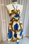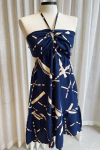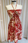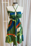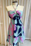 Vestido curto confeccionado em tecido de toque suave, caimento leve e fluidez. Possui gola alta com detalhe de amarração no pescoço, que adiciona charme e sofisticação ao visual. O modelo apresenta costas nuas, proporcionando um toque sensual e elegante, além de valorizar a silhueta. A modelagem é solta ao corpo, mas destaca as curvas de forma equilibrada e moderna.
